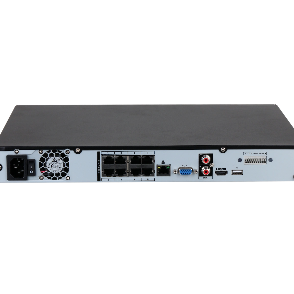 NVR Dahua 8 Canales 4K con 8 Puertos PoE | Grabador IP para 2 Discos con Inteligencia Artificial y Detección de Humanos