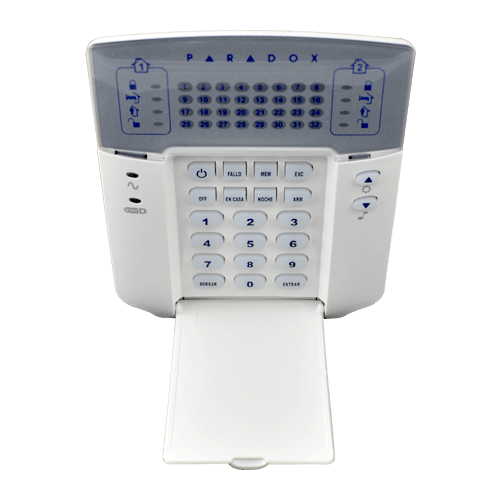 El teclado Paradox K32+ es la interfaz de control más intuitiva y eficiente para gestionar sus paneles de seguridad Spectra y Magellan. Diseñado para ofrecer una visualización clara y en tiempo real, este dispositivo cuenta con indicadores LED individuales para supervisar hasta 32 zonas de protección de forma simultánea. Su compatibilidad total con la exclusiva tecnología StayD de Paradox garantiza que el sistema permanezca siempre armado, protegiendo el perímetro incluso mientras usted se encuentra dentro del inmueble. Gracias a sus indicadores de estado para 2 particiones independientes y su teclado retroiluminado ajustable, el K32+ combina una estética moderna con una funcionalidad robusta, permitiendo un control total del sistema mediante botones de acceso rápido y una navegación simplificada para el usuario final.